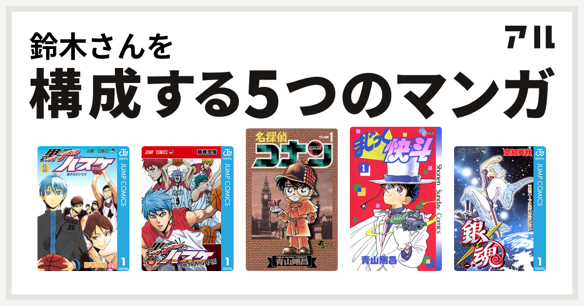 鈴木さんを構成するマンガは黒子のバスケ 黒子のバスケ Extra Game 名探偵コナン まじっく快斗 銀魂 私を構成する5つのマンガ アル